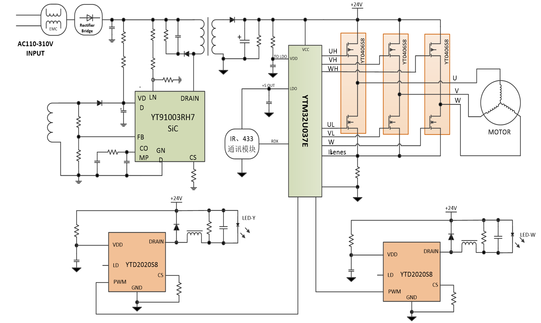 - AC Line Under Voltage and Over Voltage Protection- Driver output open circuit, short circuit, a cycle by acycle to limit the current protection